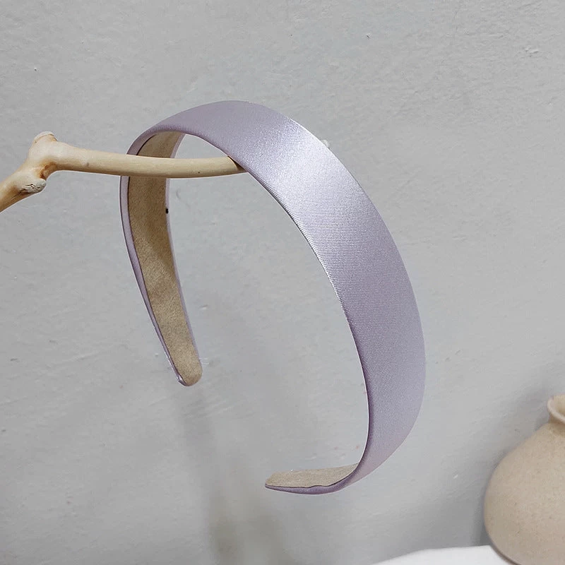 Elevate your hair routine with our 2.5cm-wide silky satin headband. The acrylic material, covered in fabric, exudes luxury, while the suede lining ensures a secure hold throughout the day.