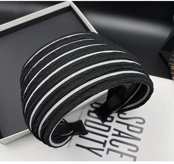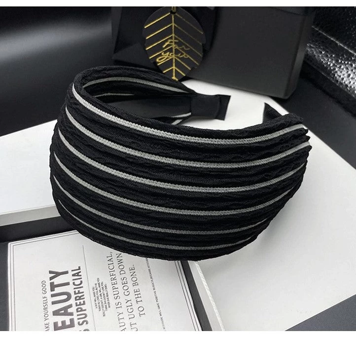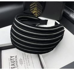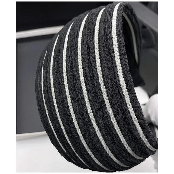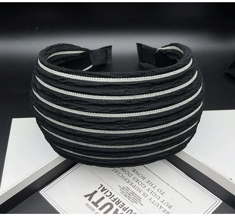 This 7cm wide striped black headband features a high-quality soft nylon fabric and a 3cm wide flexible acrylic inner headband with small teeth for a secure fit. Its design offers ultimate comfort and it is suitable for all head sizes.