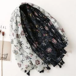 Be the first to review “Black Grey Multicoloured Flowers Print Scarf With Tassels” Cancel reply