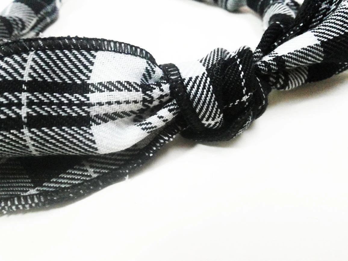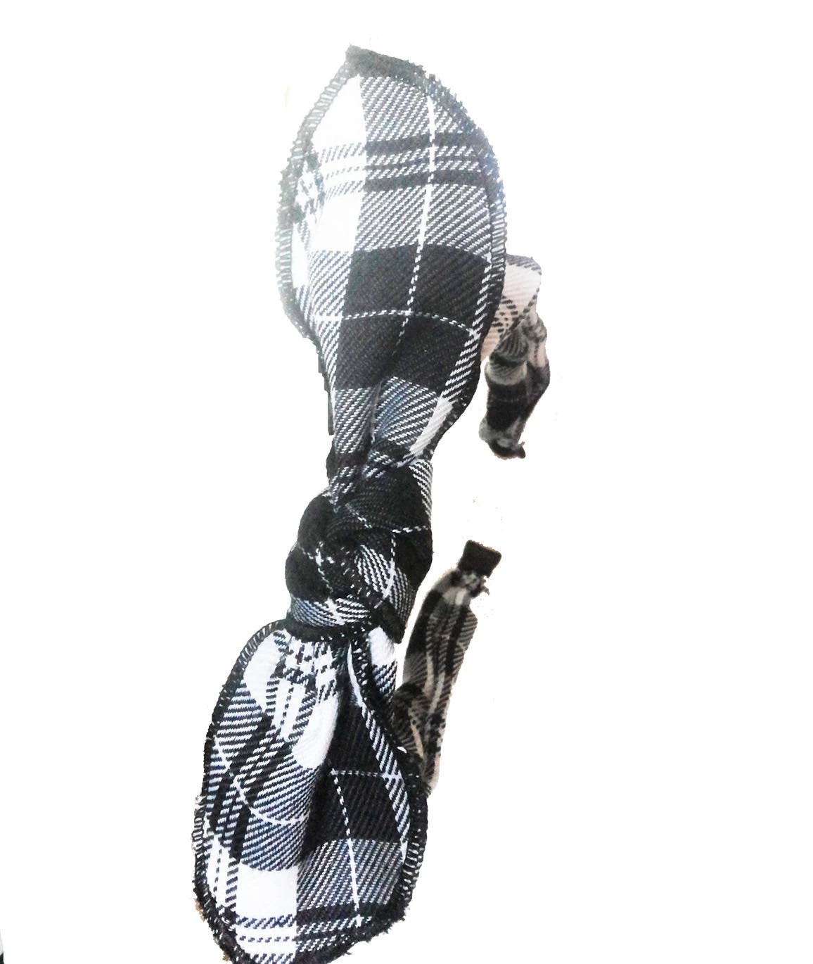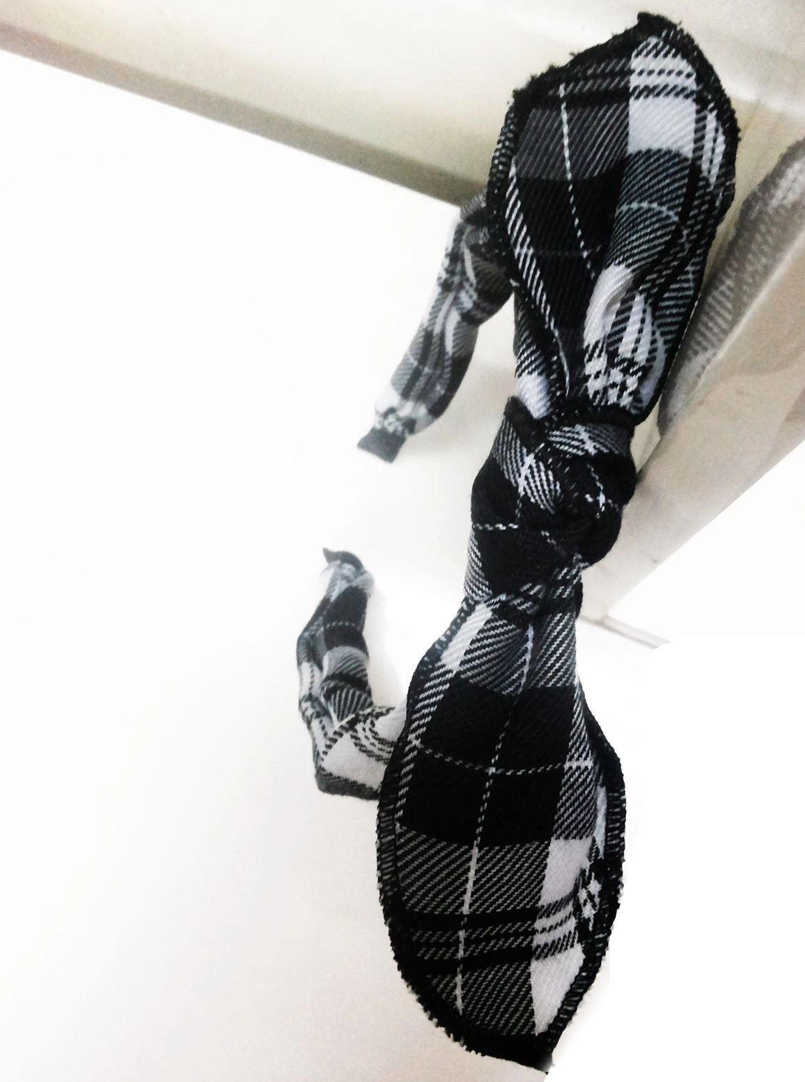 Black White Shepherd’s Plaids Patterned Headband With Bow