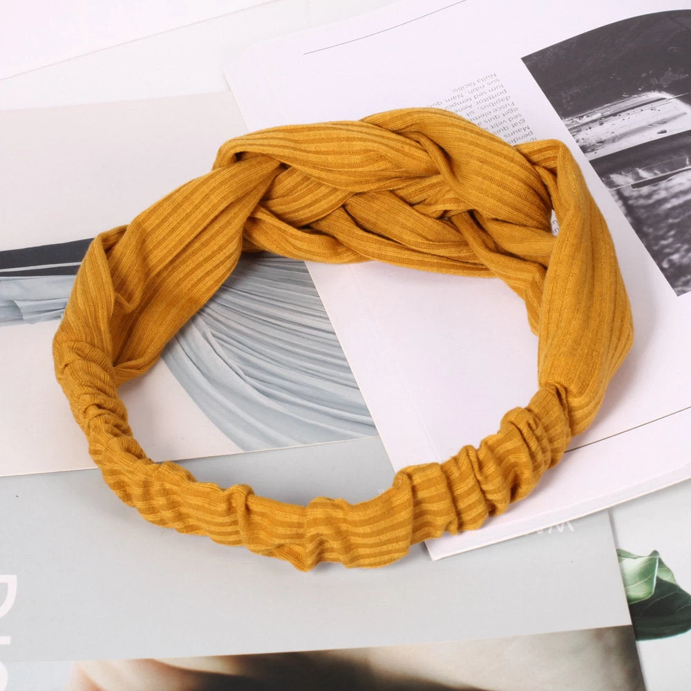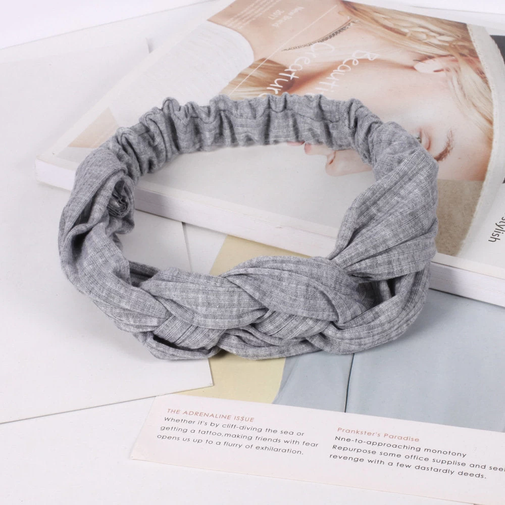 Braided Front Ribbed Cotton Elastic Head Band