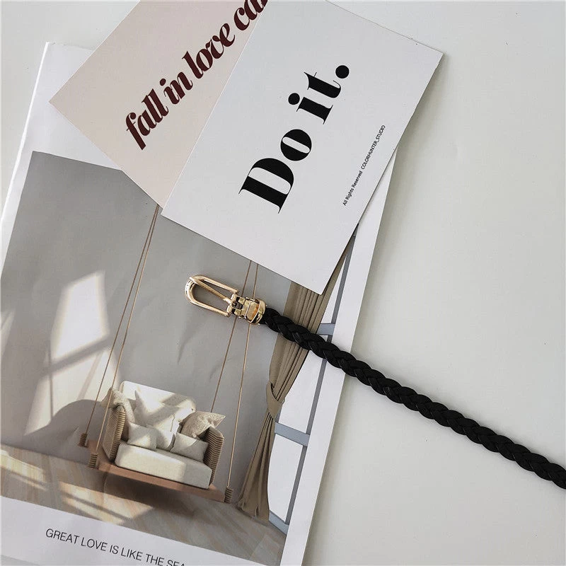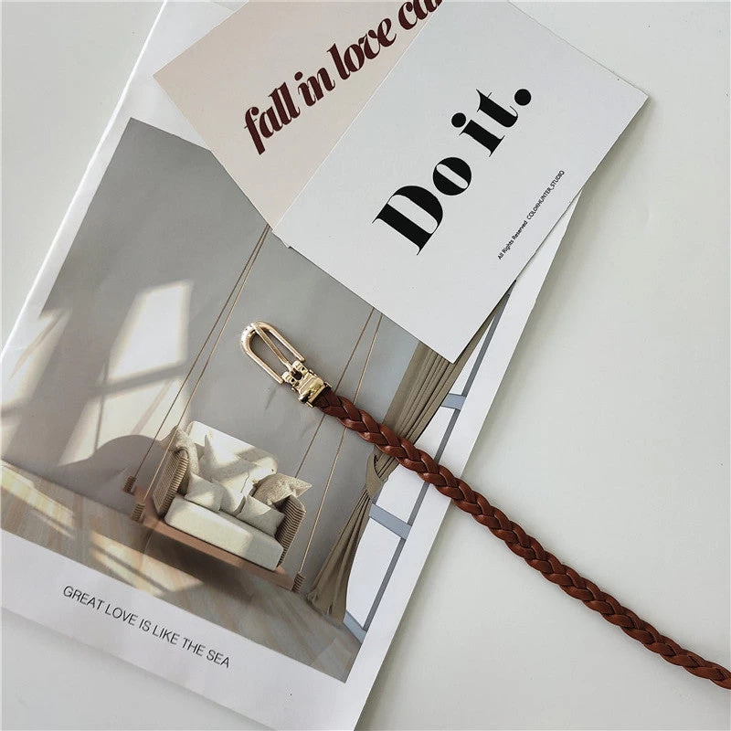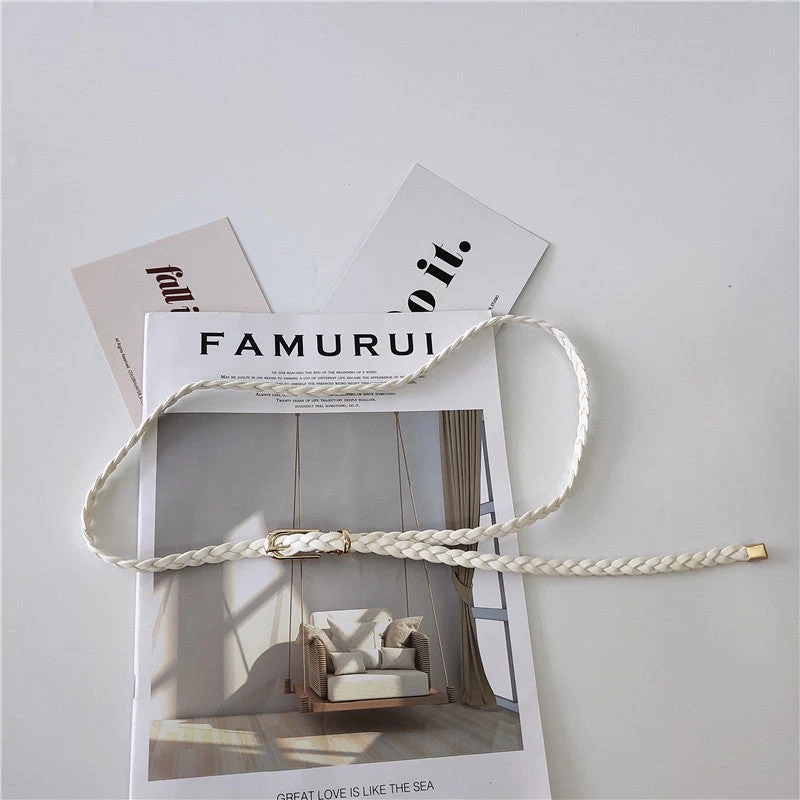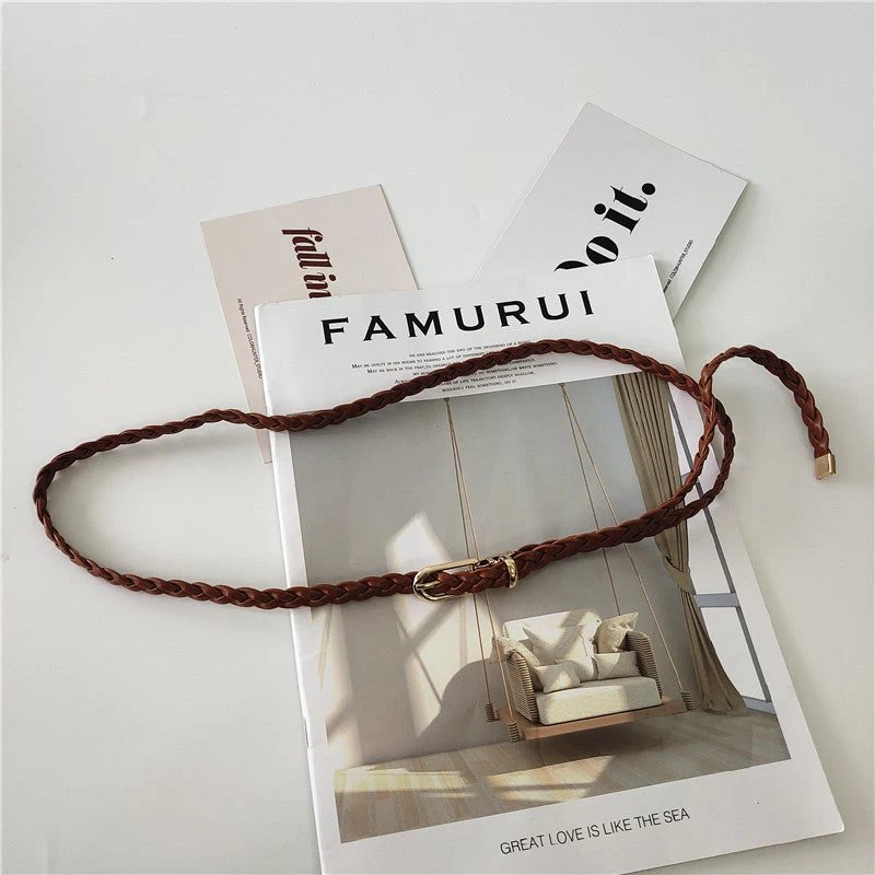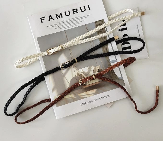 Enhance your look with ease. The braided thin belt measures 0.7cm wide and 105cm long, making it the perfect accessory to complete any outfit.