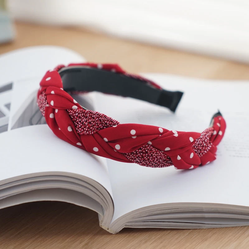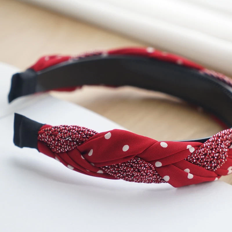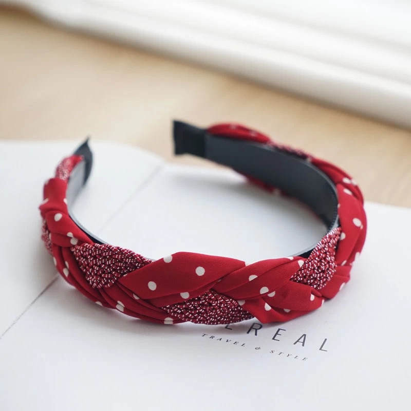 Braided Top Headband In Mixed Red Polka Dots