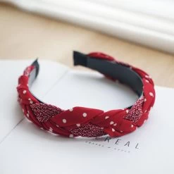 Be the first to review “Braided Top Headband In Mixed Red Polka Dots” Cancel reply