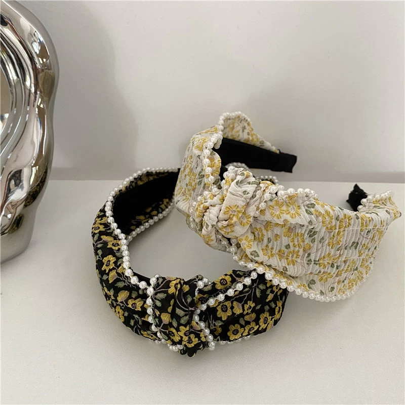 Be the first to review “Chiffon Floral Knotted Headband With White Pearls Edge” Cancel reply
