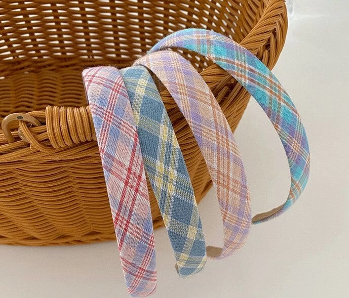 Cotton Headband In Multi-coloured Plaids