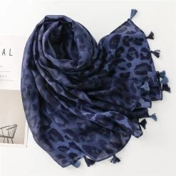 Be the first to review “Deep Blue Leopard Print Long Scarf With Tassels” Cancel reply