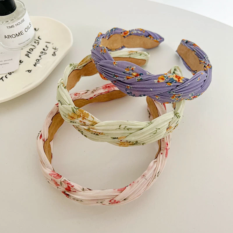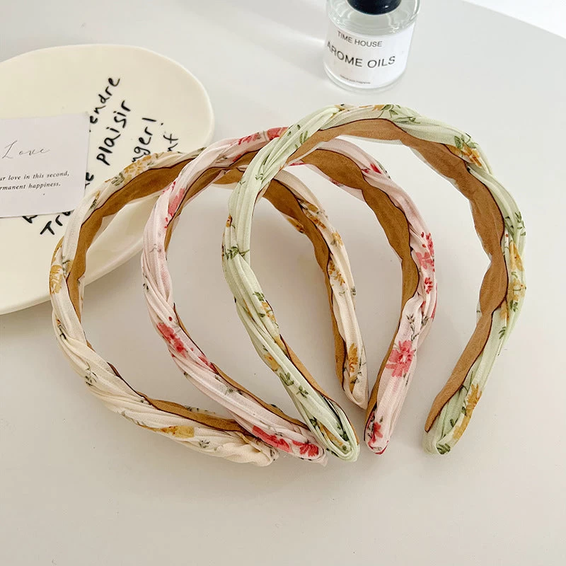 Floral Chiffon Twist Braided Head Band