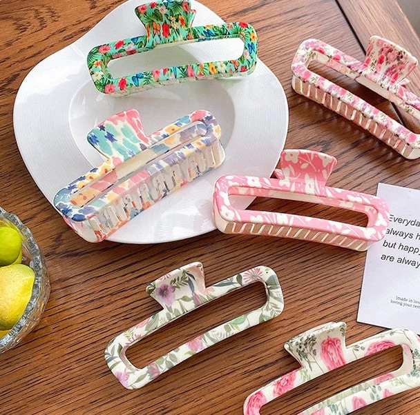 Be the first to review “Floral Print Acrylic Rectangle Large Hair Claw” Cancel reply