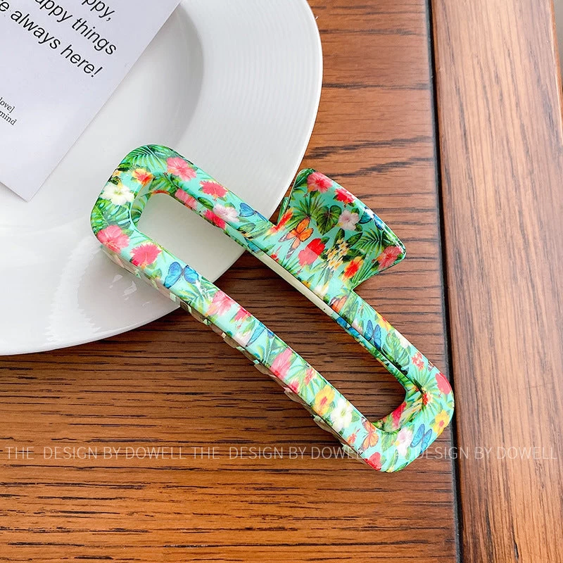 Floral Print Acrylic Rectangle Large Hair Claw