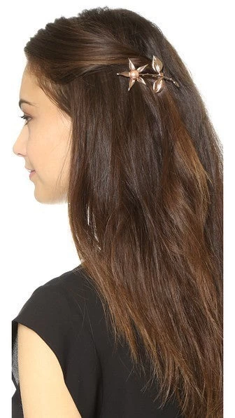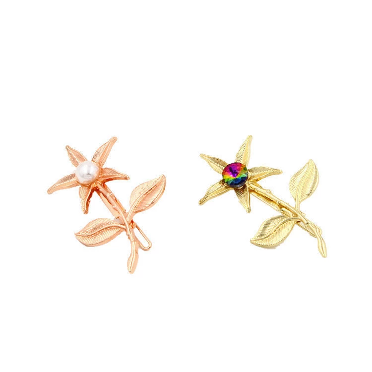 The golden-plated hair clips boast a beautiful flower branch design, adding an elegant touch to your hair. Measuring 7cm long and 4cm wide, they are the perfect size for any hairstyle.