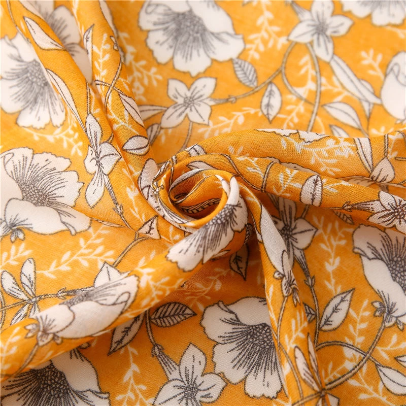 Be the first to review “Flowers Print Gold Yellow Fringed Scarf” Cancel reply