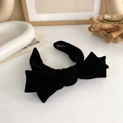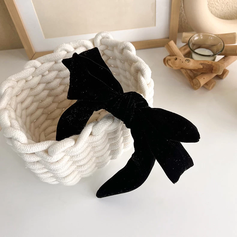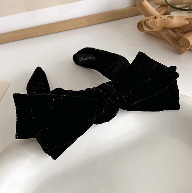 Glitter Black Velvet Headband With Bow