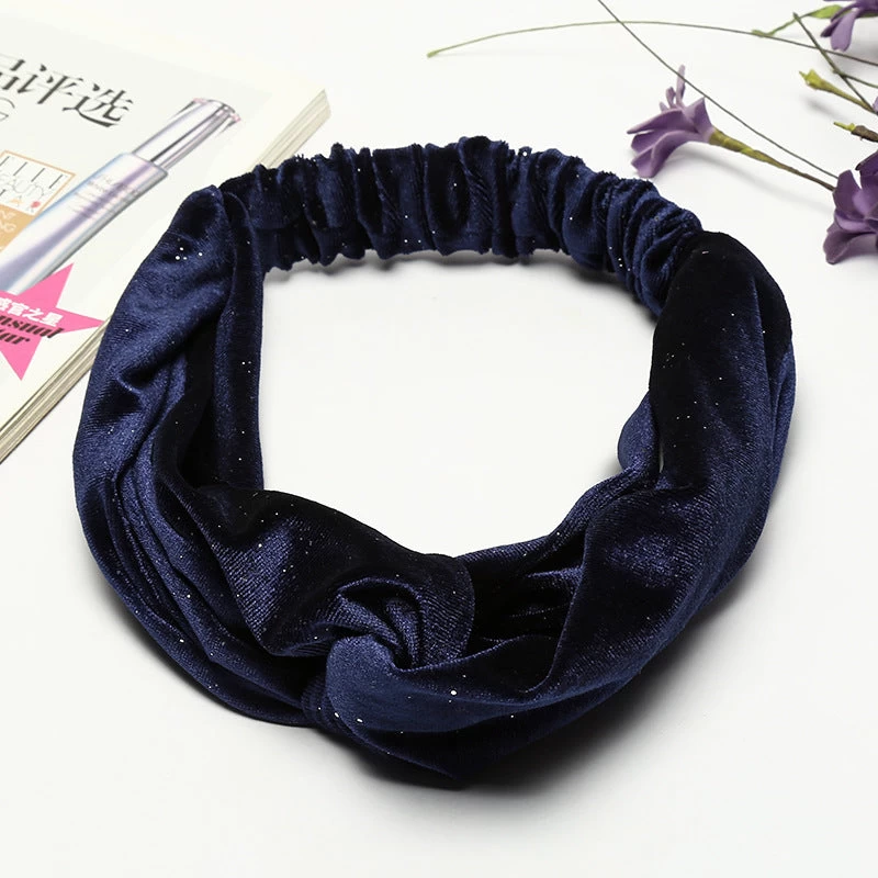 Glitters Velvet Elastic Headband In Navy