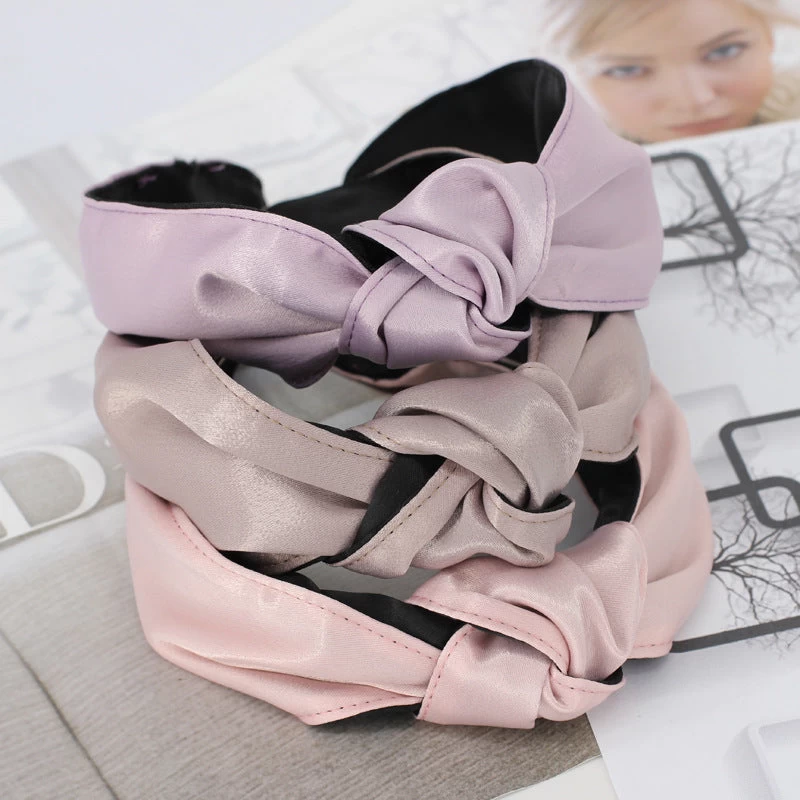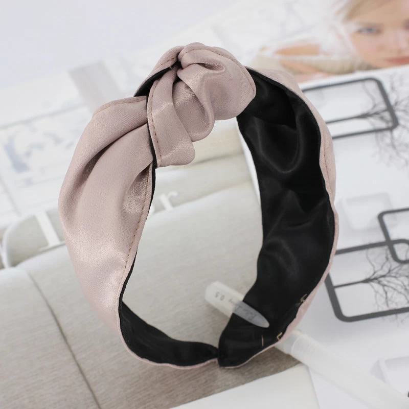 This knotted headband is made of 6cm smooth glossy satin fabric at its widest point and a 2cm wide inner headband, making it a comfortable and stylish option for most head sizes.