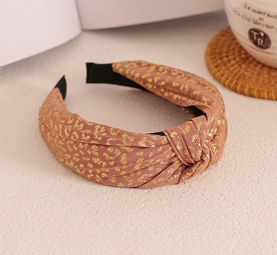 Gold Leopard Stamped Sheer Chiffon Knotted Headband