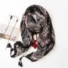Expertly crafted from 100% Viscose, our Gold stamped orange yellow leaves print navy grey fringed scarf is designed to be the perfect accessory for any season. Measuring 180cm in length and 90cm in width, this versatile scarf provides ample coverage while being lightweight and breathable. With its timeless design and high-quality material, it’s a must-have for any fashion-forward individual.