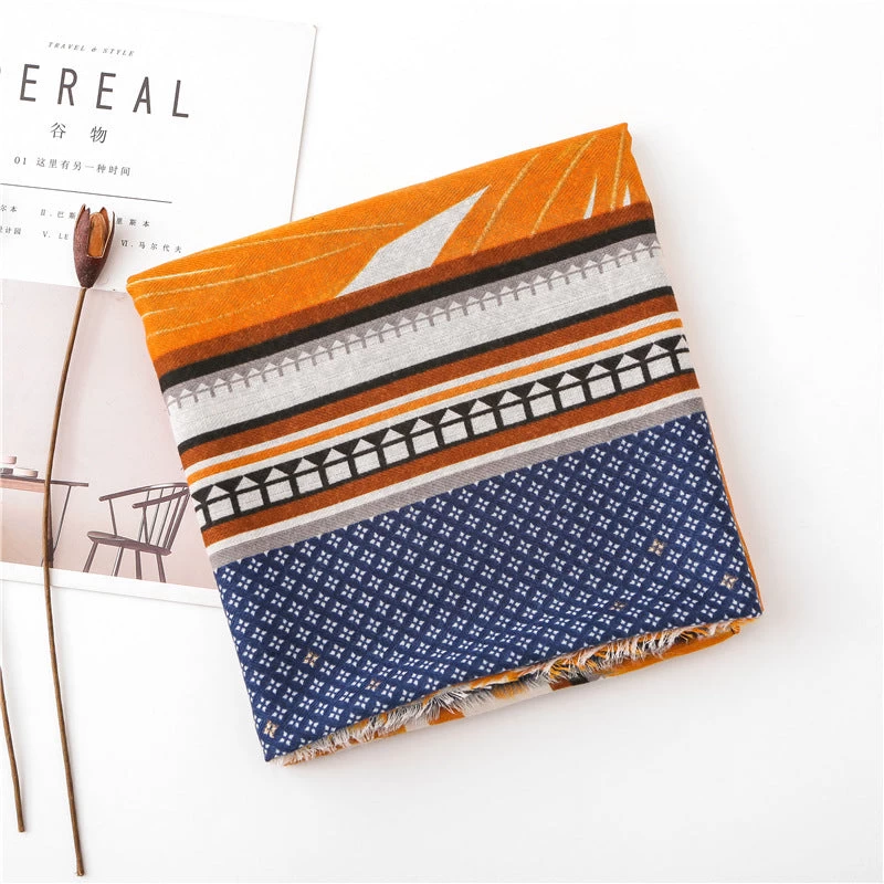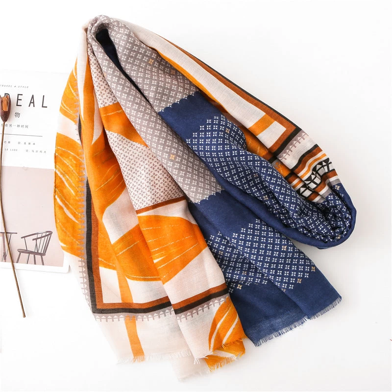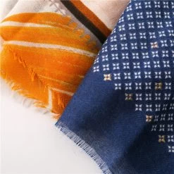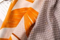 Be the first to review “Gold Stamped Orange Yellow Leaves Print Navy Grey Fringed Scarf” Cancel reply
