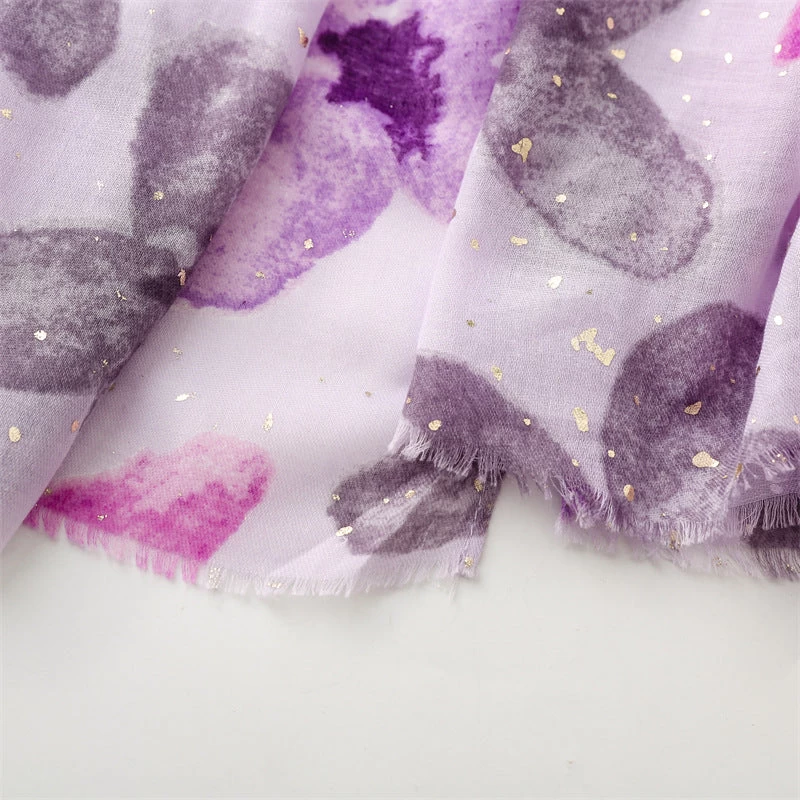 Gold Stamped Pink Fuchsia Large Flowers Print Fringed Scarf