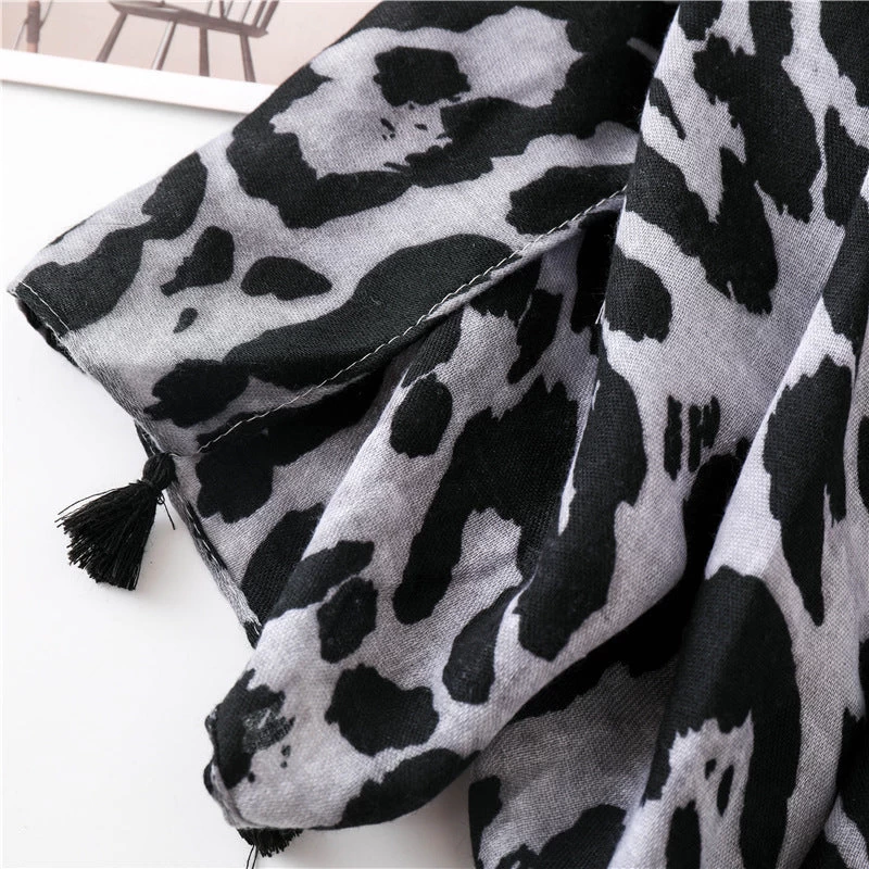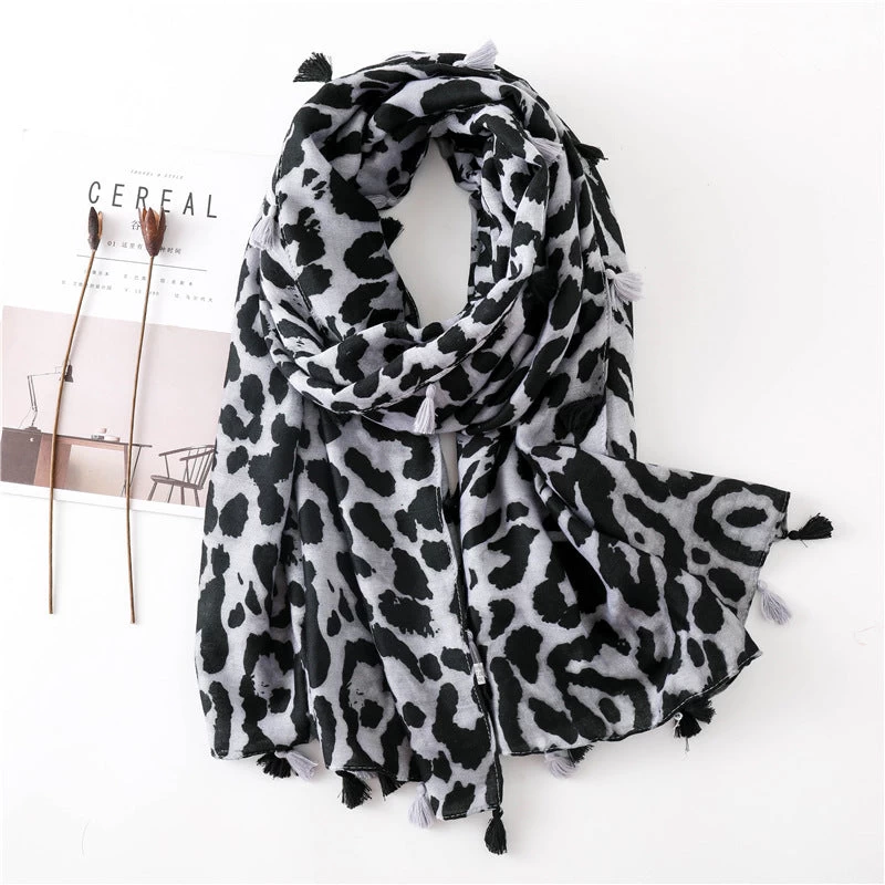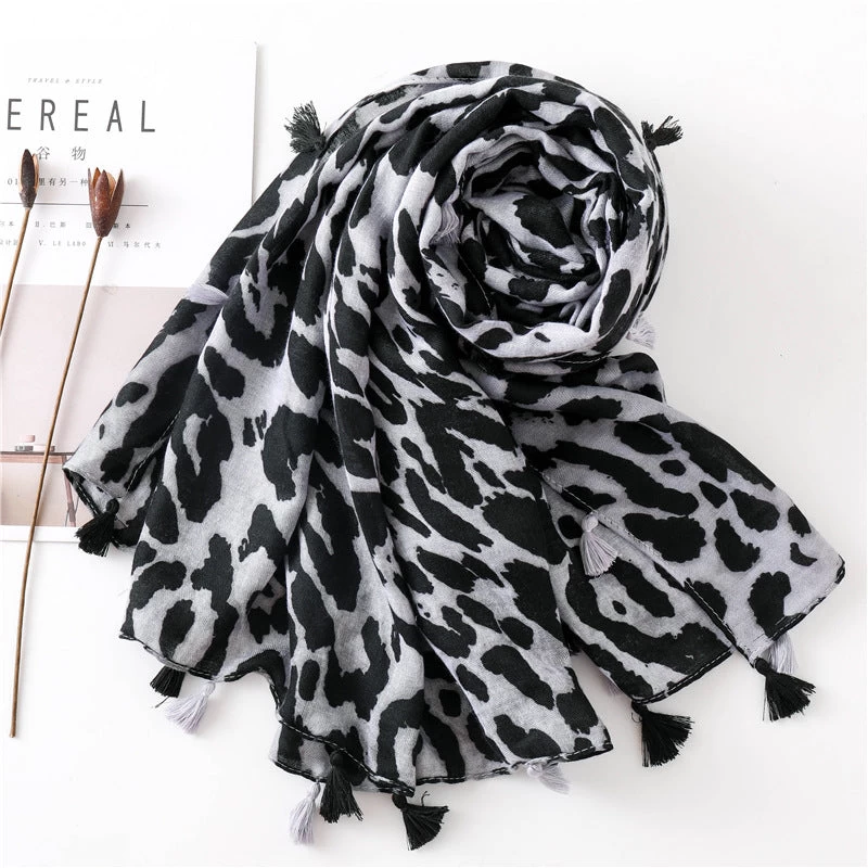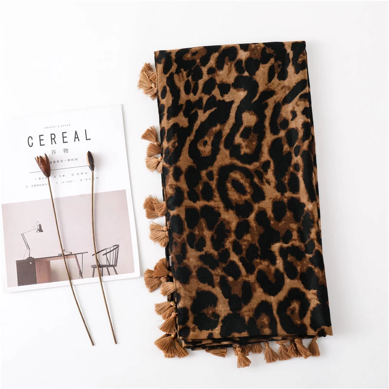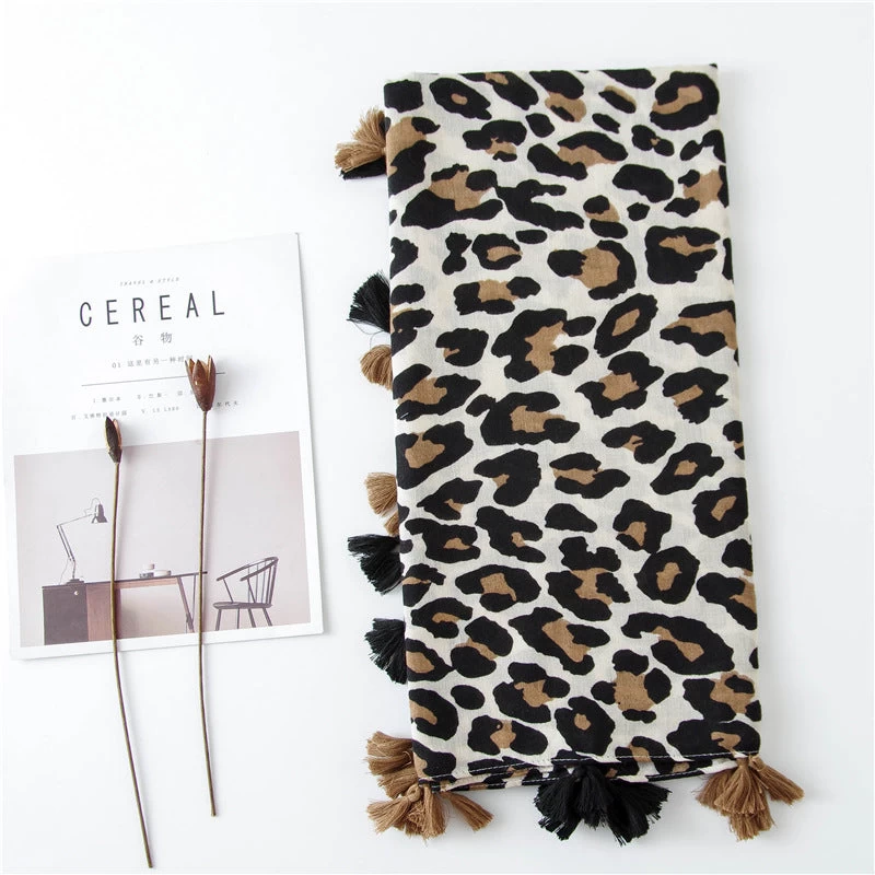 Large Leopard Print Scarf With Tassels