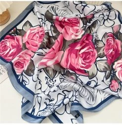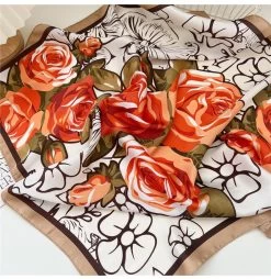 This scarf is made with a soft silk-feeling polyester, offering a luxurious and gentle feel. With dimensions of 70cm x 70cm, it offers limitless styling options, empowering you to curate your own distinctive style.