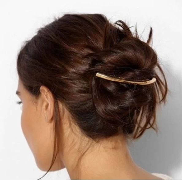 Metal Tube Crescent Hair Barrette
