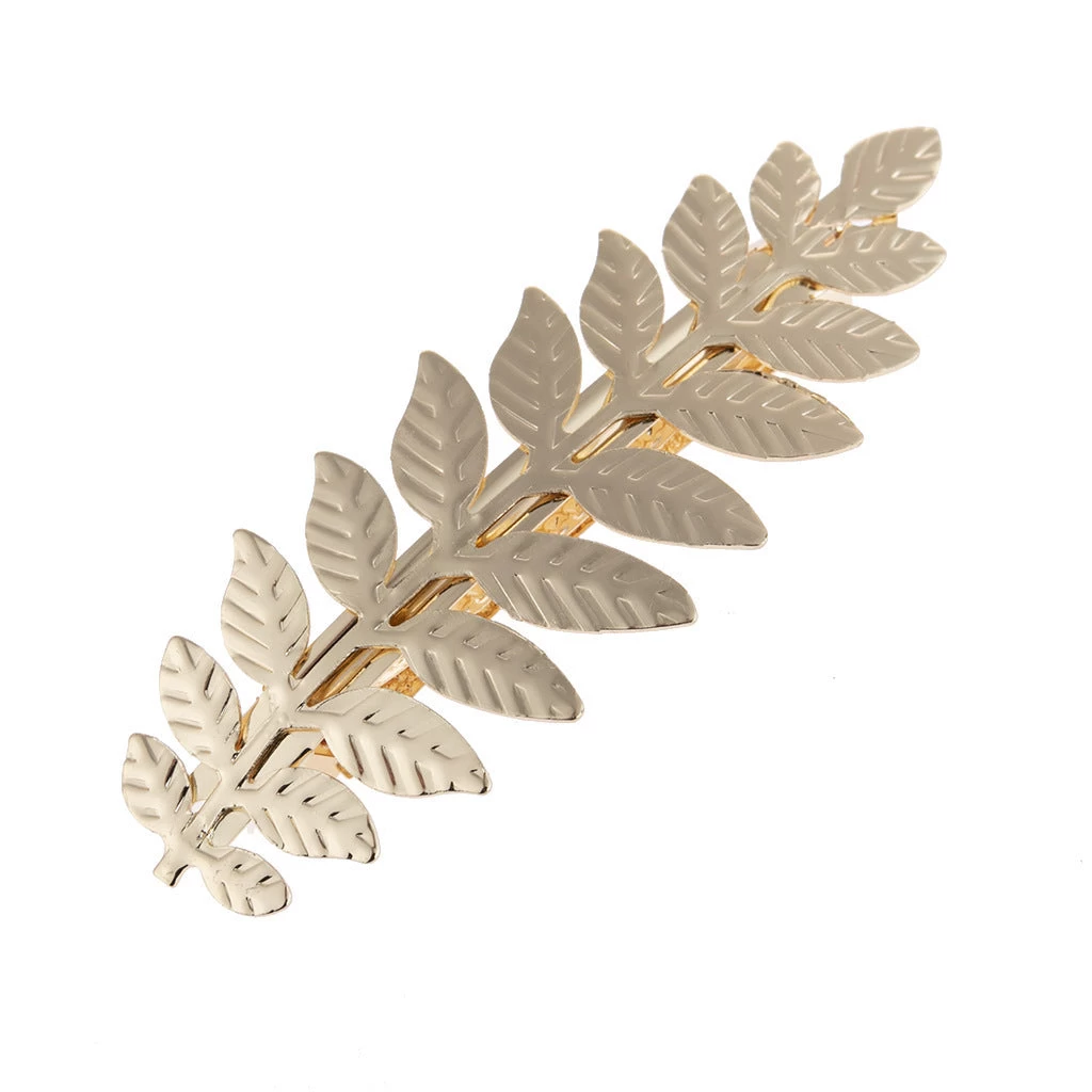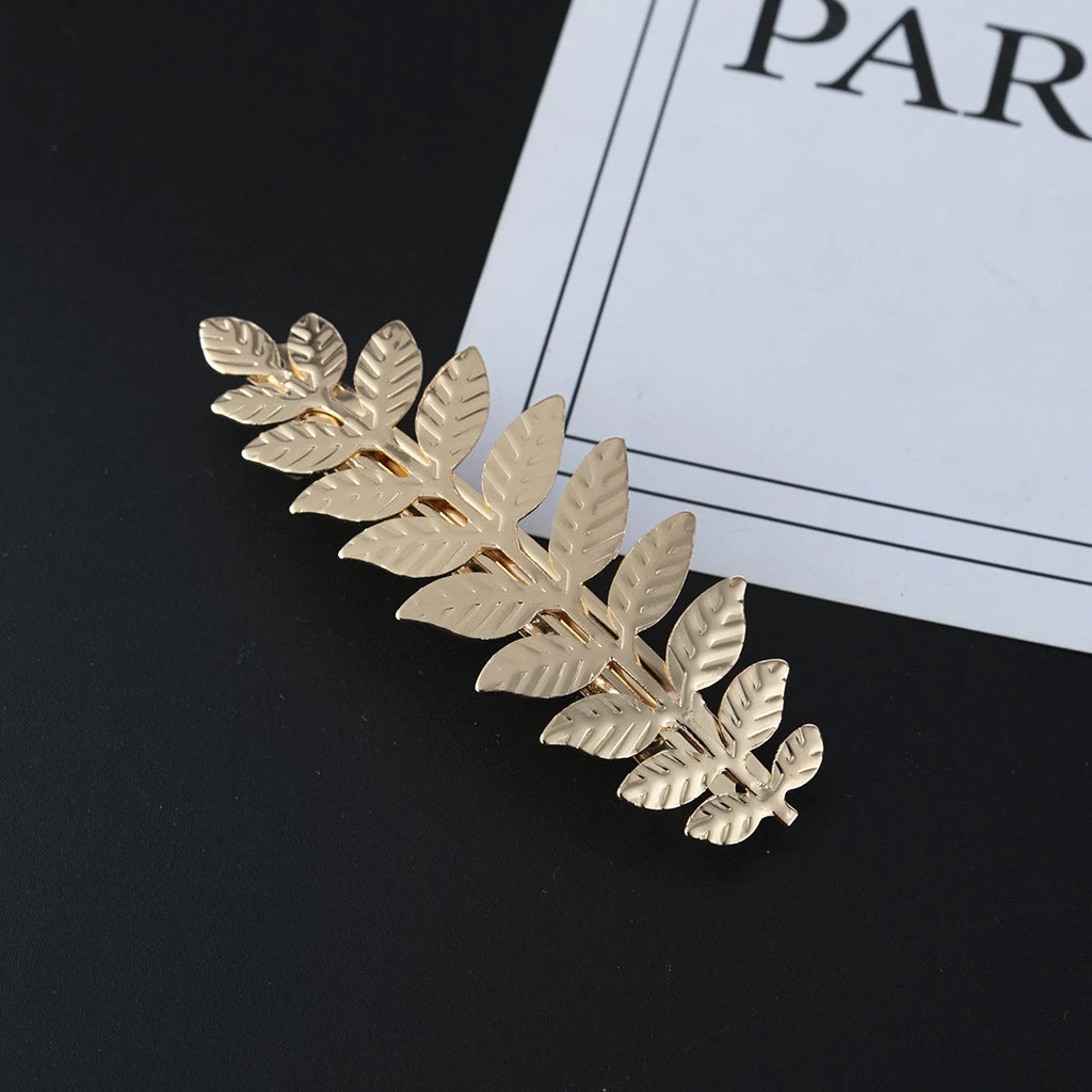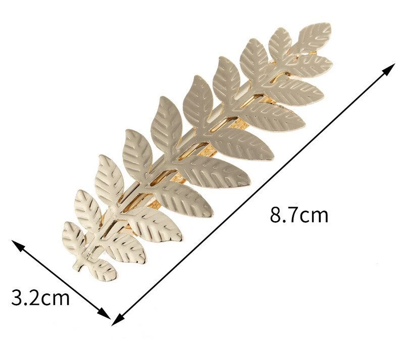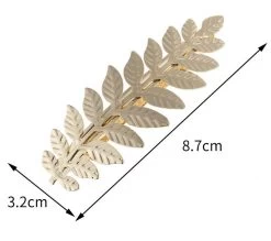 Crafted from high-quality metallic materials, this hair comb features a stunning design of branches and leaves. Measuring 8.7cm long and 3.2cm wide at the top, with a 6cm long barrette clip at the bottom.