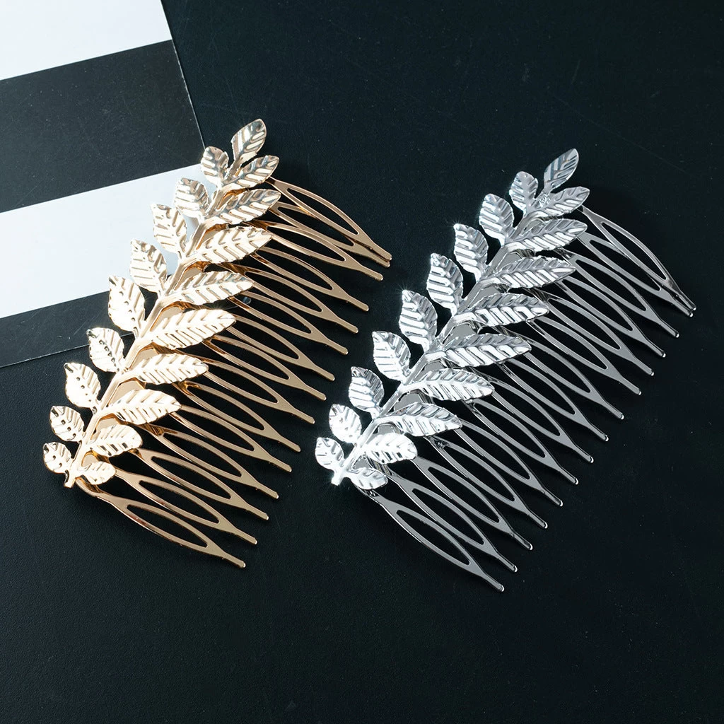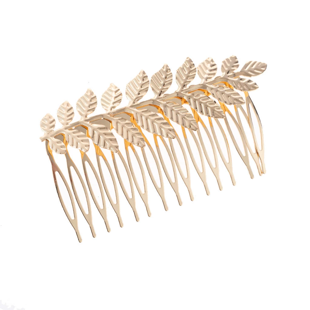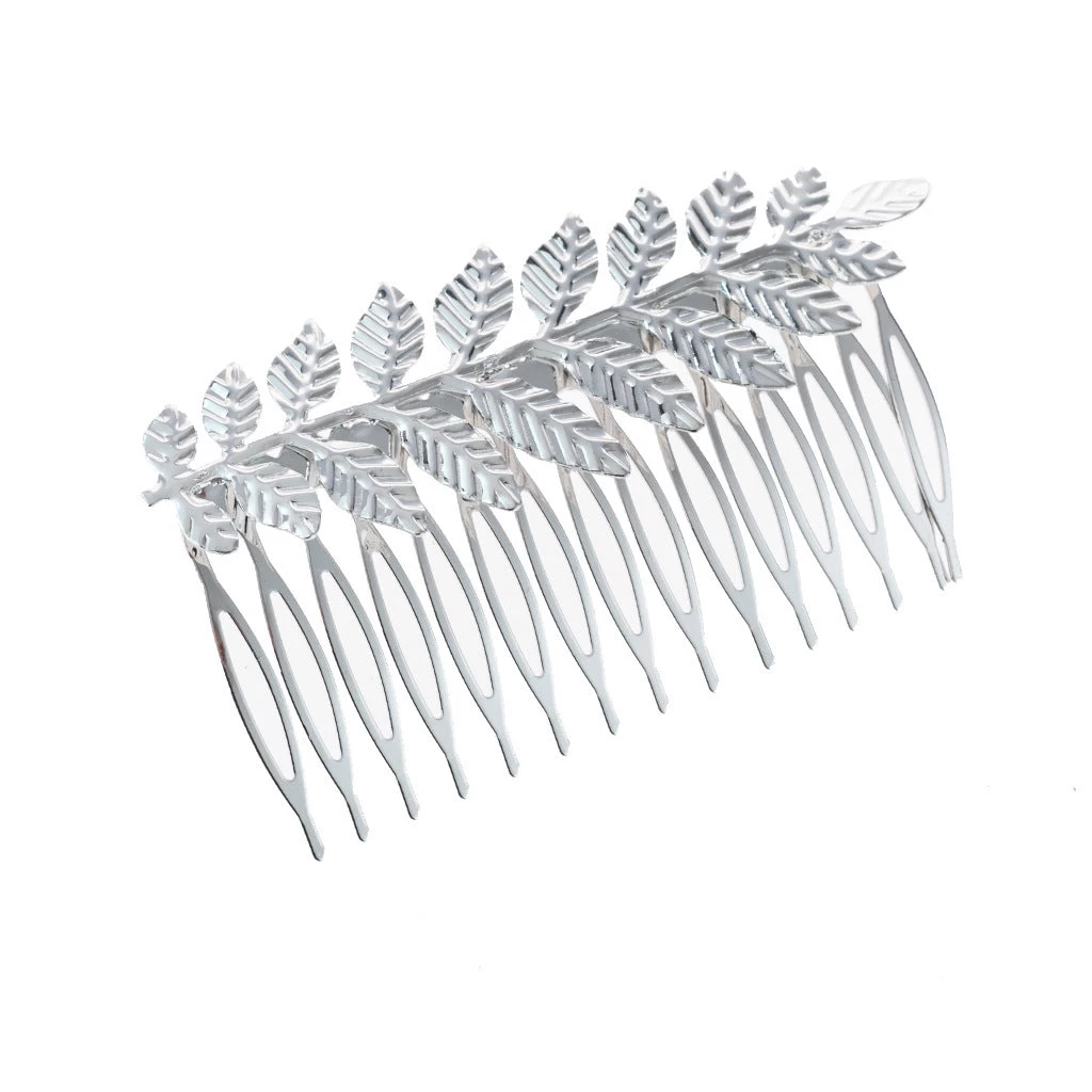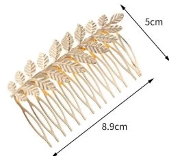 This hair comb features a quality metallic construction, incorporating a beautiful leaf branch design. With dimensions of 8.5cm in length and 5cm in width, it offers a sophisticated and elegant touch to any hairstyle.
