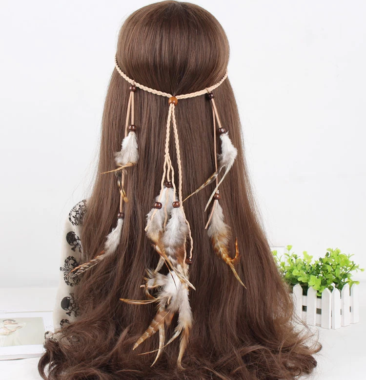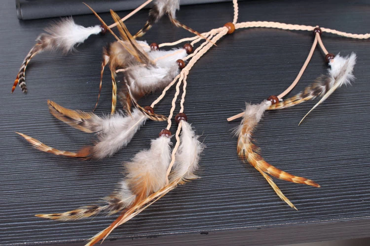 Be the first to review “Multi-layer Braided Suede Band With Brown Feathers” Cancel reply
