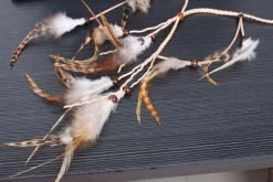 - Feathers are on sliding knots and can be fully adjustable