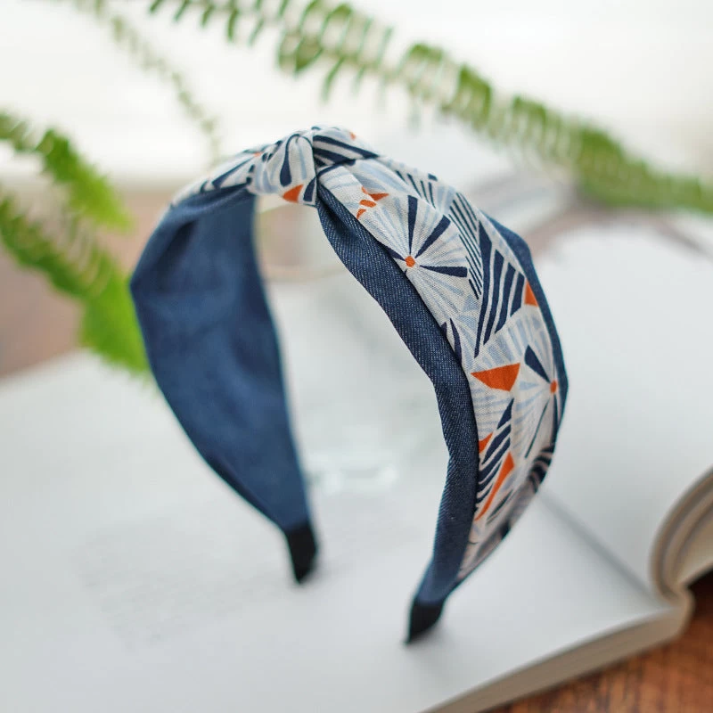 Constructed with premium cotton material, this headband offers a cosy fit and striking design. It measures 5cm at its largest point and combines lightweight comfort with fashionable flair. The flexible inner wire band makes it suitable for all sizes, allowing for all-day wear.