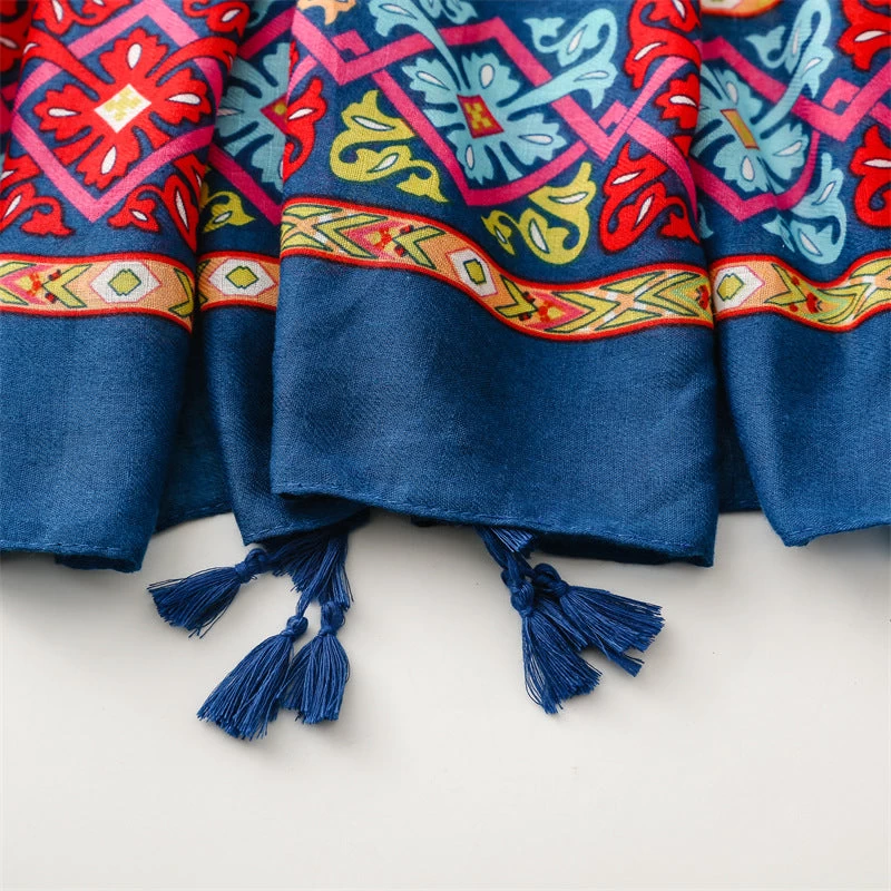 Multicoloured Red Navy Scarf With Tassels