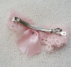 This product features a carefully crafted 9.5cm x 5cm bow made from high quality lace and satin ribbon. Designed with precision and attention to detail, it adds an elegant touch to any hairstyle and is sure to elevate your look for any occasion.