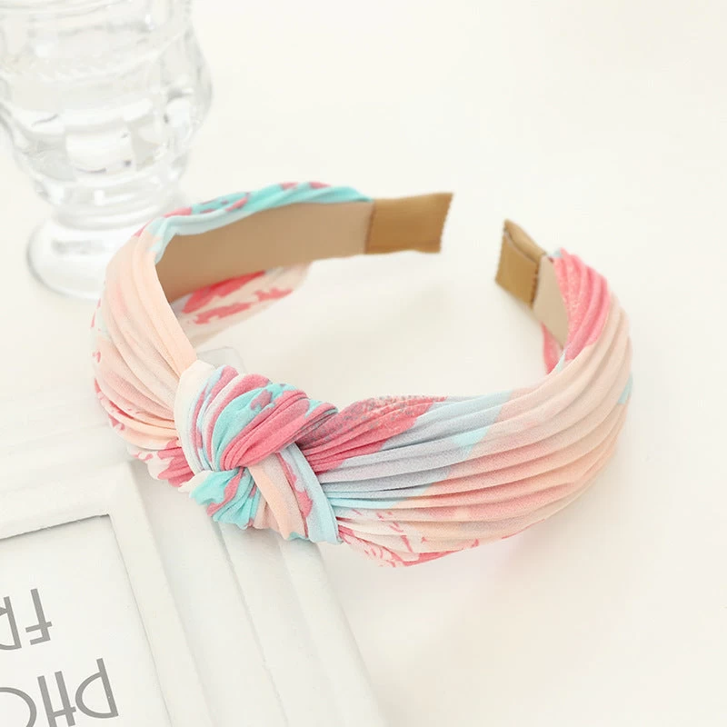 Pleated Chiffon Tie-dye Printed Knotted Headband