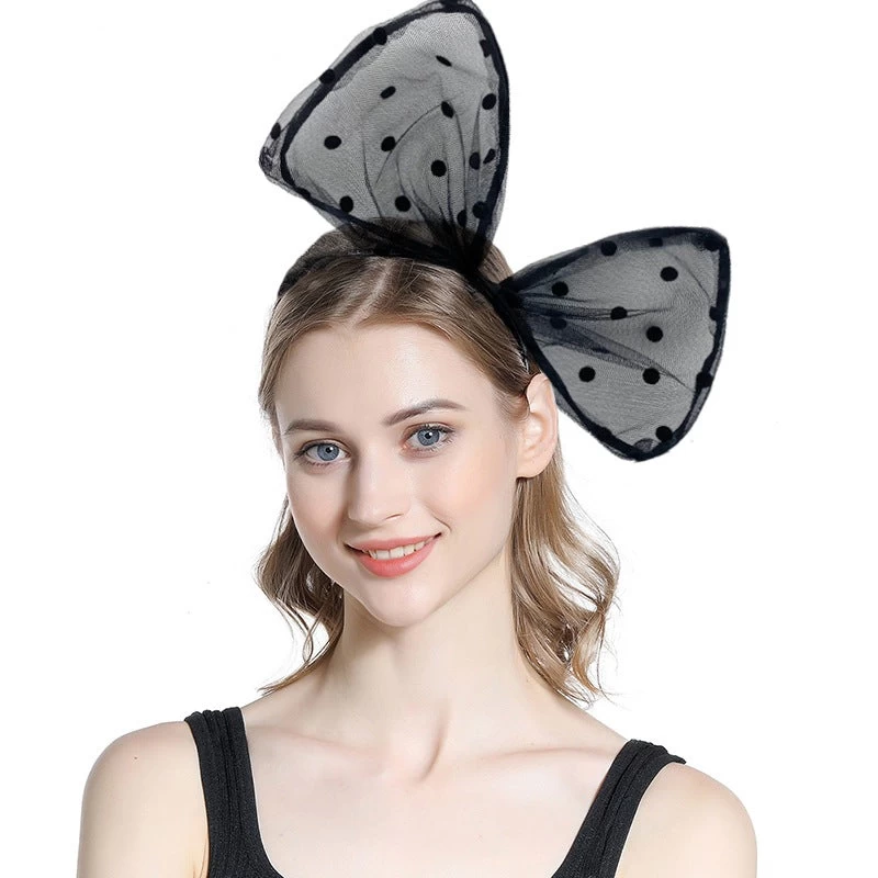 Polka Dotted Black Lace Large Bow Headband