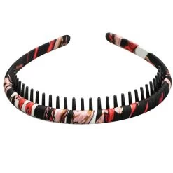 Crafted from smooth satin material and featuring a durable acrylic inner band, this headband is accented with 1.5cm long teeth for a secure fit. Its one-size design ensures effortless wear and comfort for the majority of head sizes.