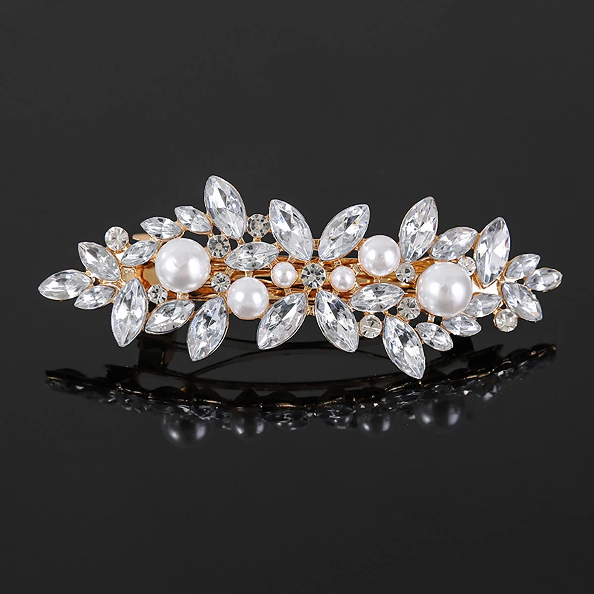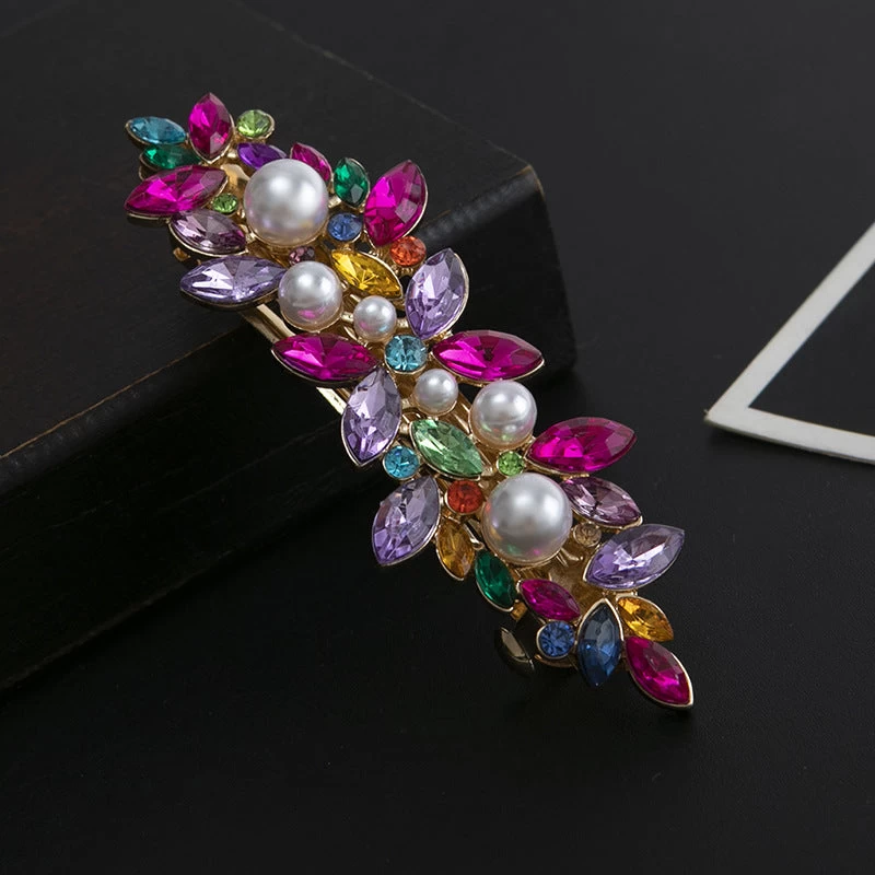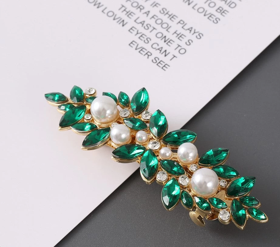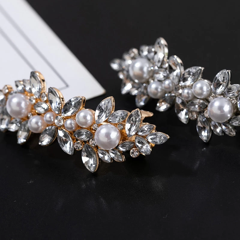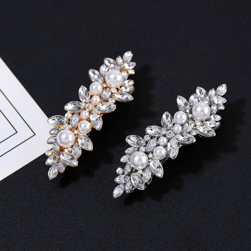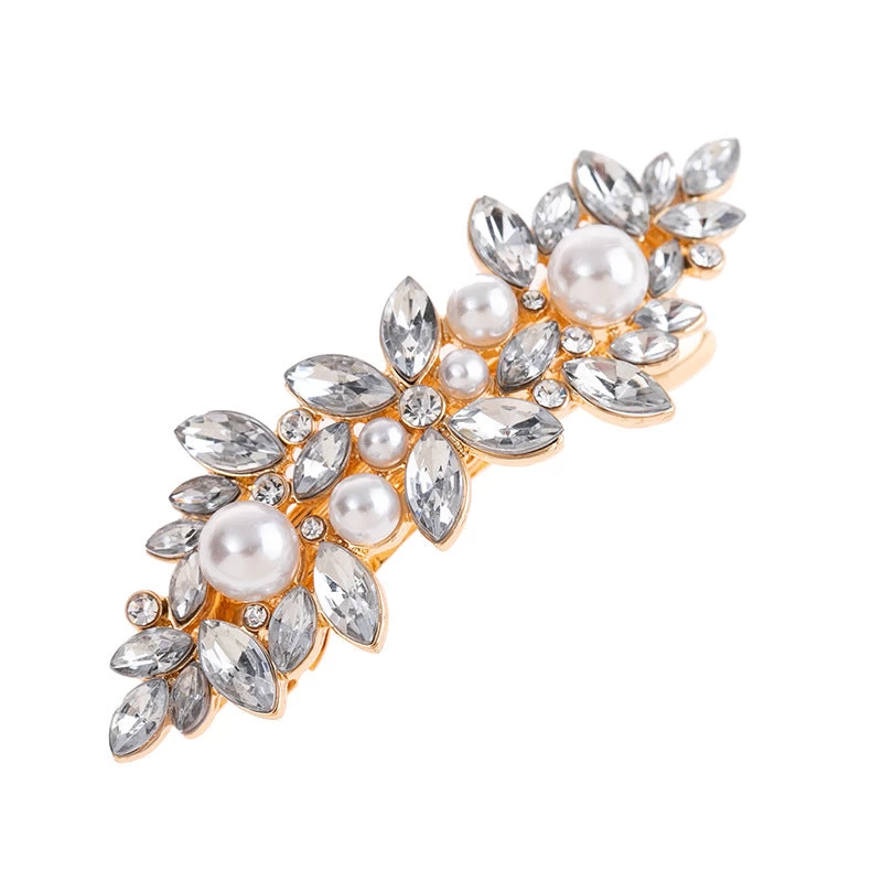 The Rhinestones floral metal hair barrette is designed with clear rhinestones and white faux pearls for a sophisticated and elegant look. Measuring at 7.8cm long to with a bottom barrette size of 5cm, it is the perfect accessory to elevate any hairstyle. With its high-quality materials and sleek design, this hair barrette offers both style and functionality. Whether you’re going for a casual or formal look, this barrette is the ideal choice to add a touch of glamor and shine to your hair.