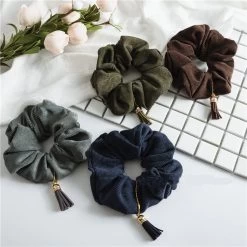 Be the first to review “Soft Corduroy Plain Scrunchy With Tassel” Cancel reply