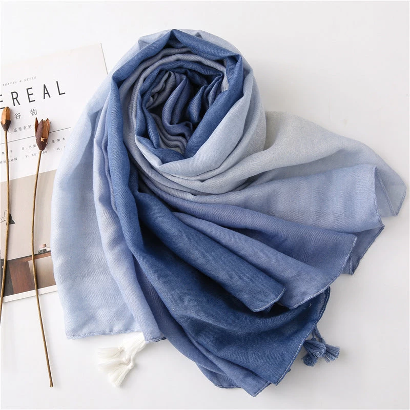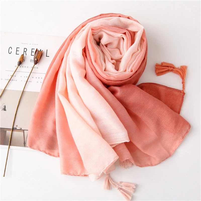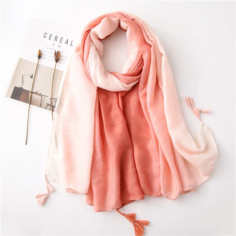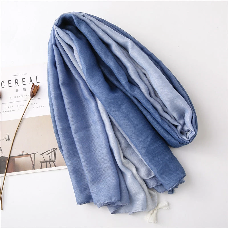 Solid Long Scarf With Tassels In Graduated Colour Pattern