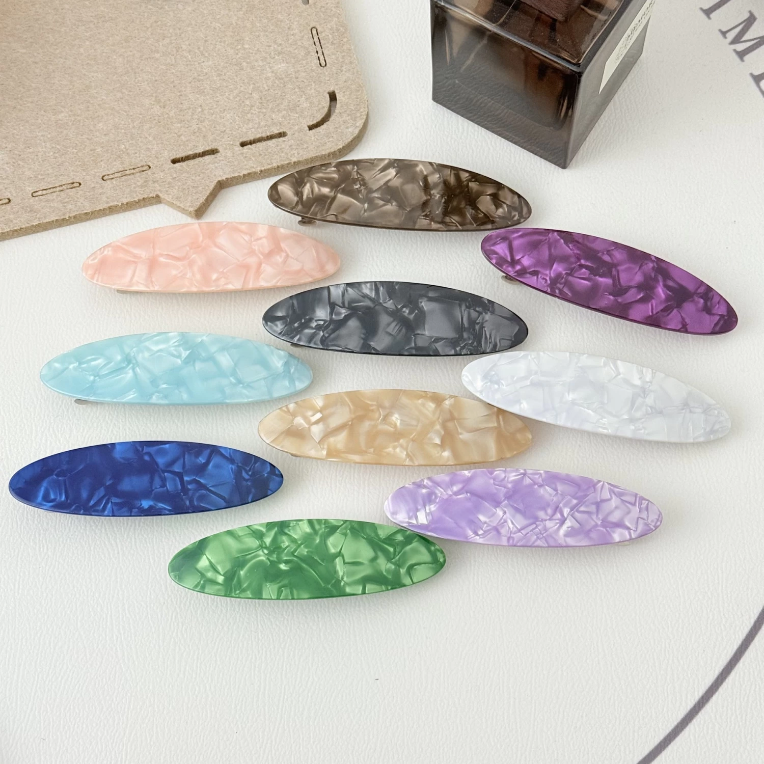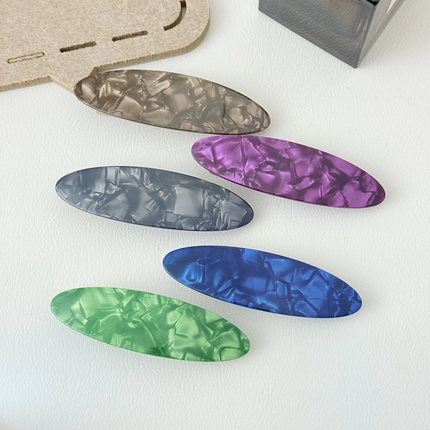 Stone Patterned Large Flat Oval Resin Hair Barrette