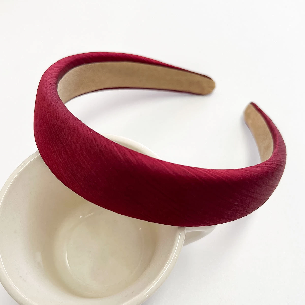 Be the first to review “Thinly Padded Crinkle Headband In Burgundy” Cancel reply
