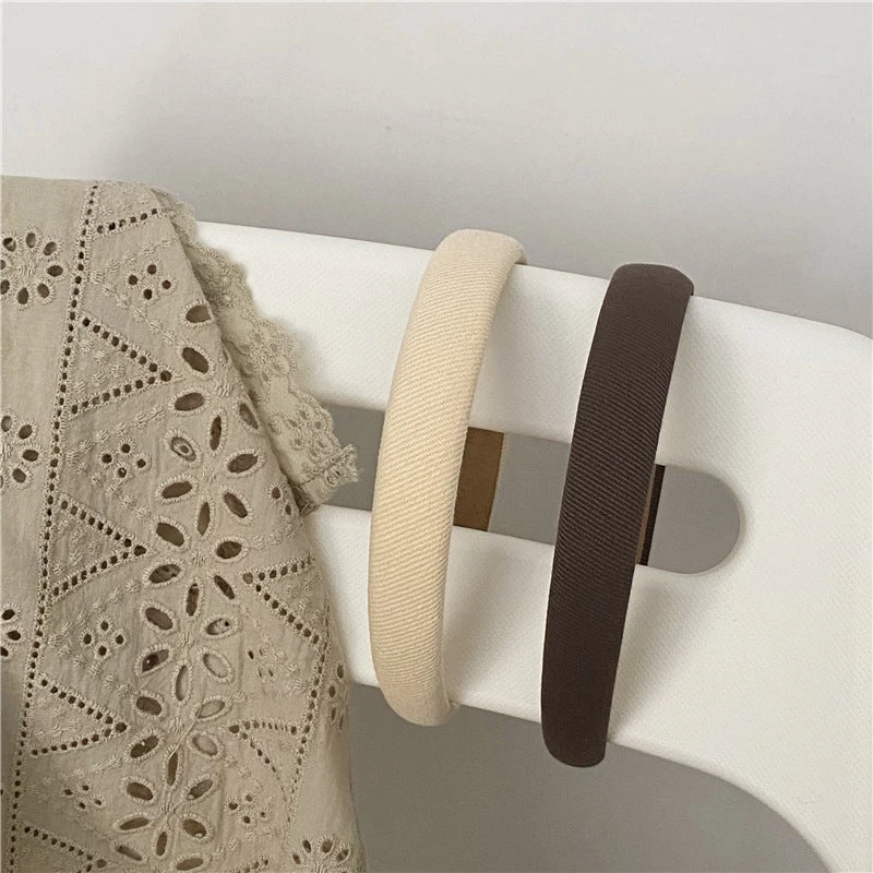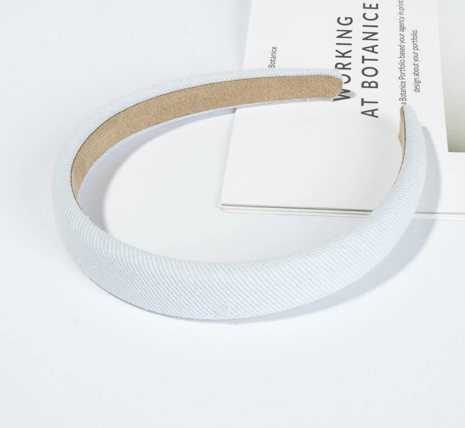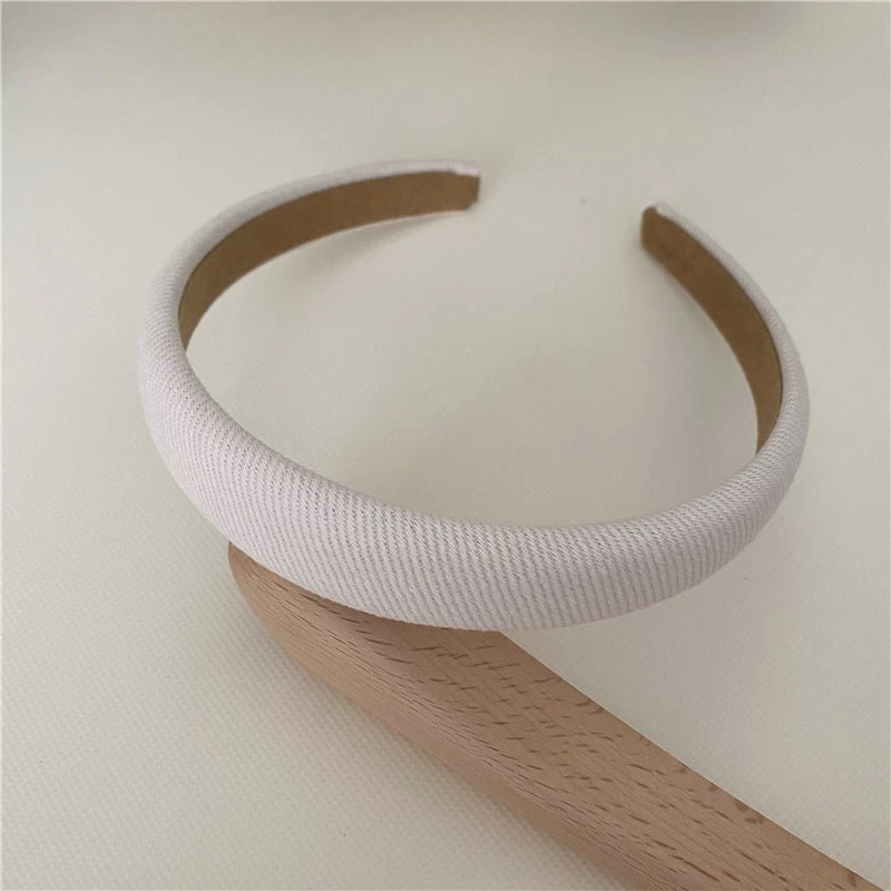 Thinly Padded Ribbed Cotton Plain Colour Headband