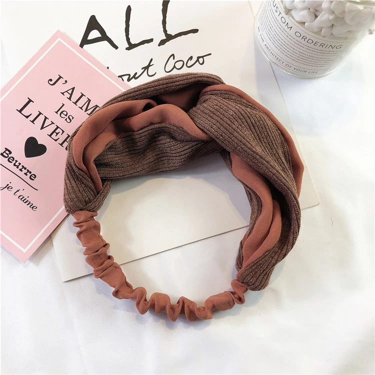 Twist Front Knitted Fabric Mixed Chiffon Elastic Headband