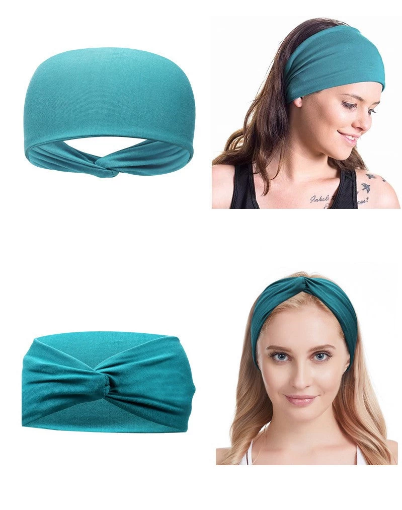 The hair band is made with super soft jersey cotton fabric, making it incredibly comfortable to wear and anti-sweat. It also has a wide and stretchy design, measuring 22cm long by 8cm wide when flat. Plus, it dries sweat quickly, making it perfect for all-day wear during sports and other activities.