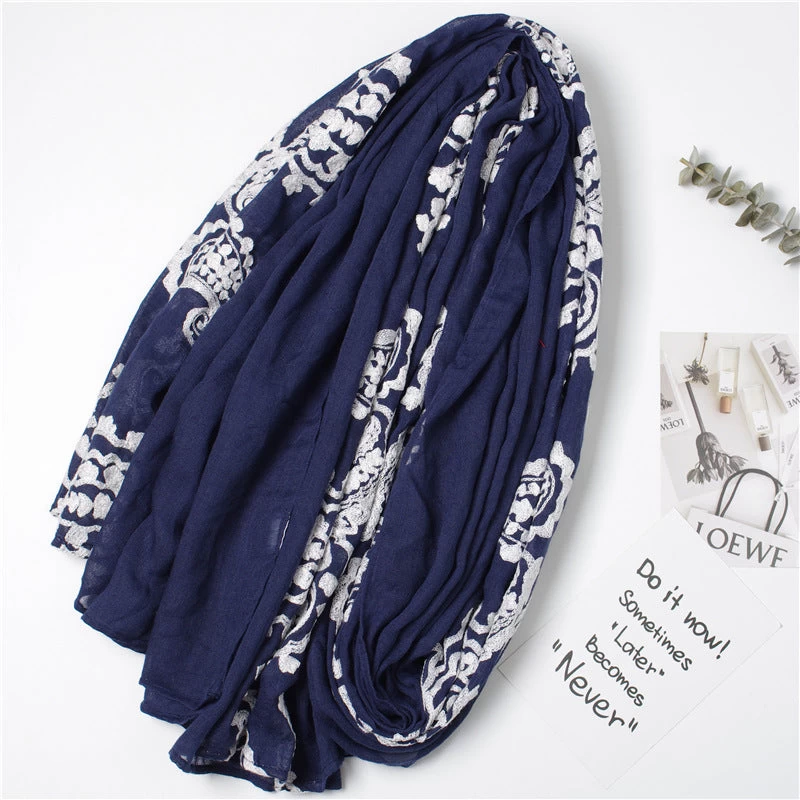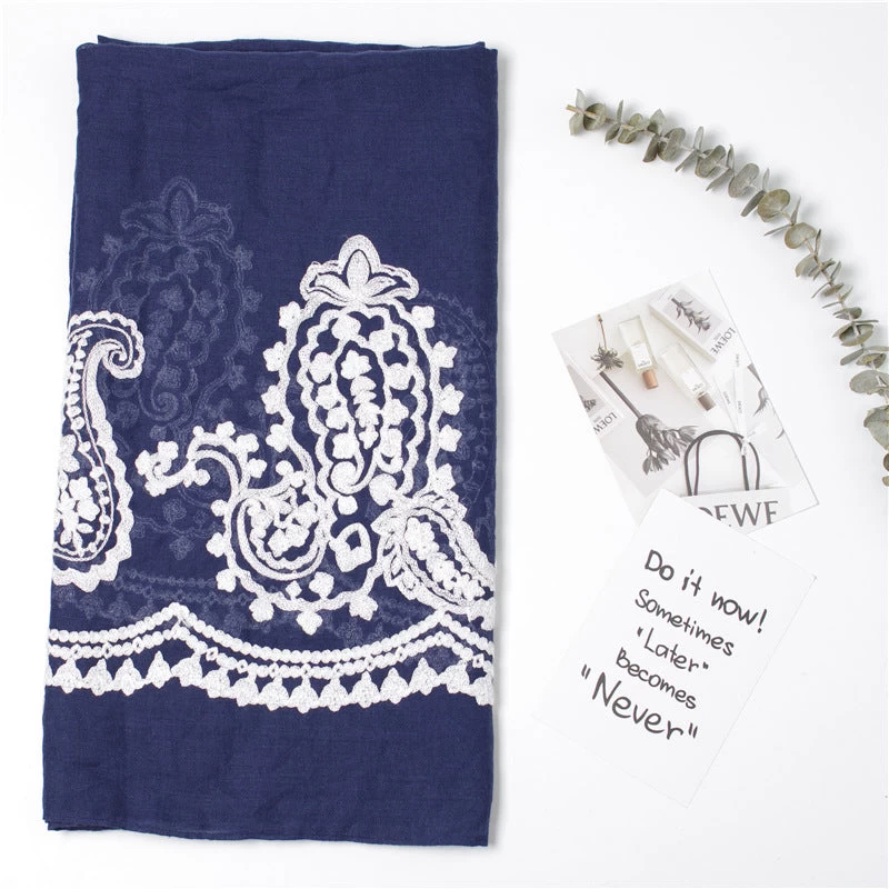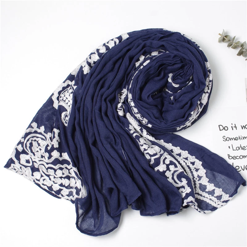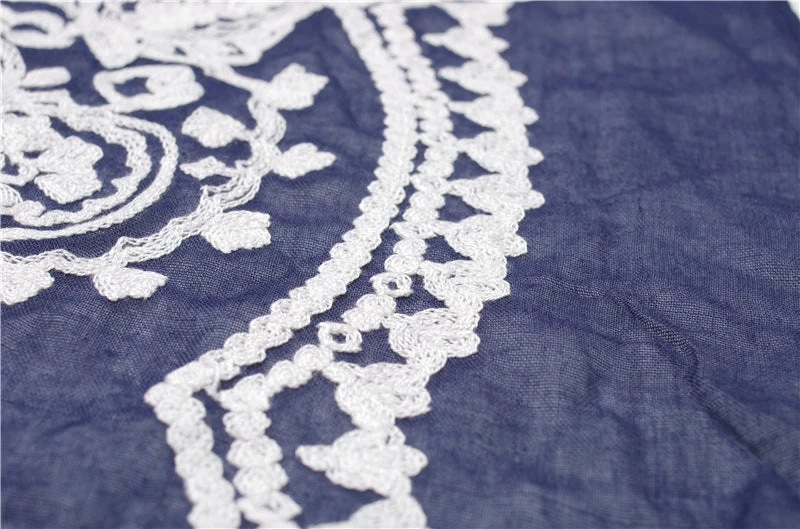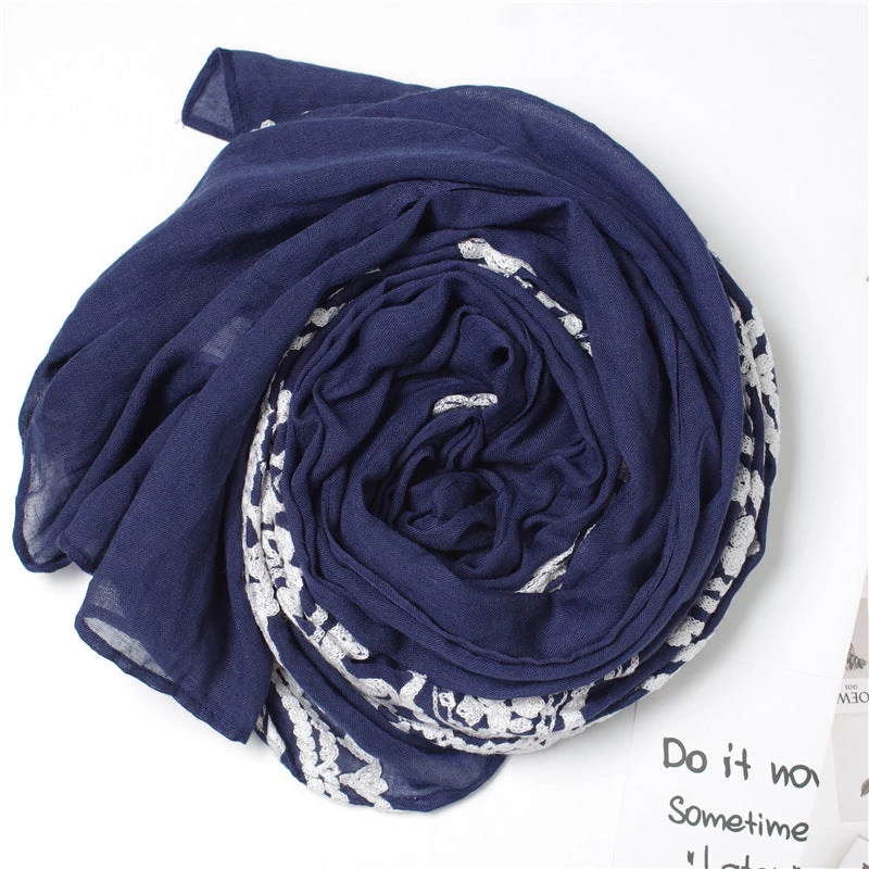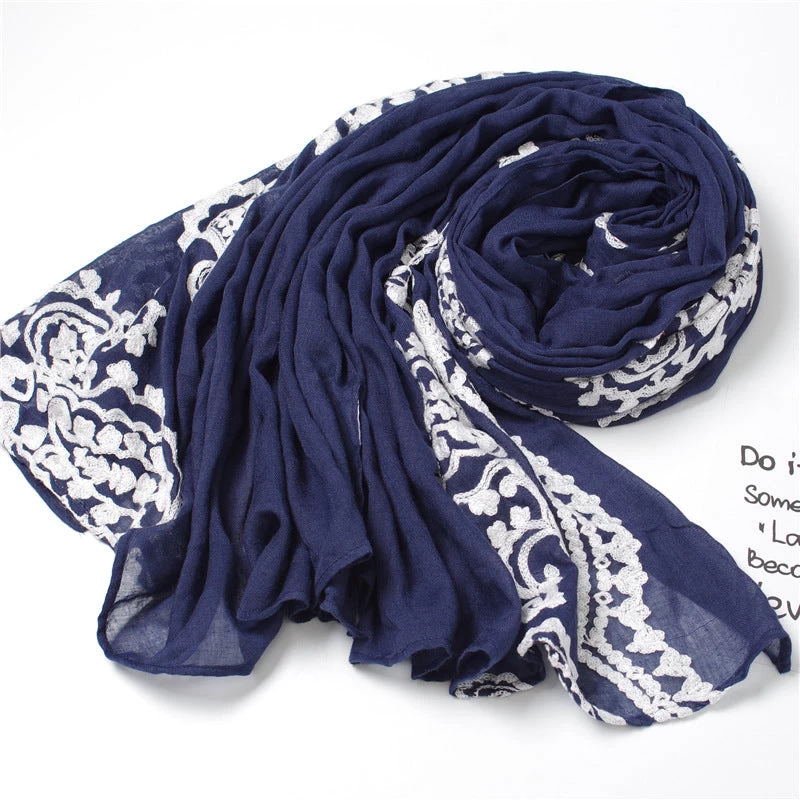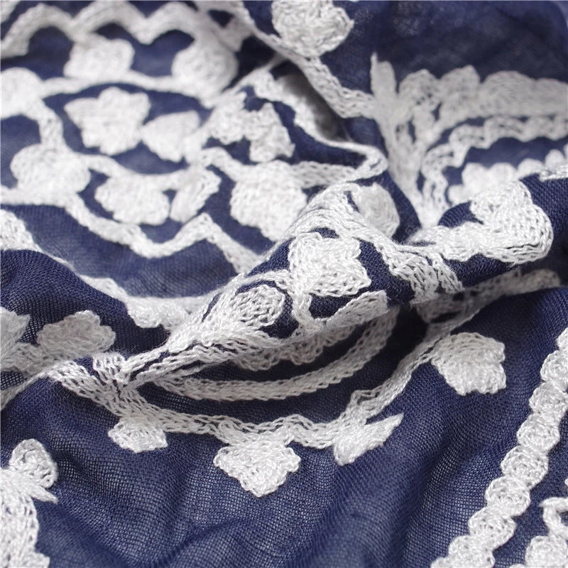 White Lace Stitched Navy Scarf