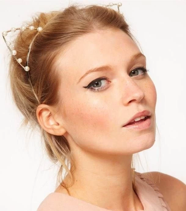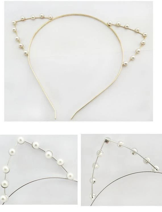 White Pearls Cat Ears Headband